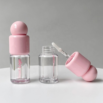 JIEMEI Stock Cute Pink Round 3.4ML Empty Lip Gloss Bottle Custom Private Label Mini Cosmetic Lip Tint Tube With Silicone Brush