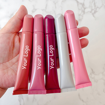 JIE MEI Stock Skinny 10ML Tapa oblicua Rosa Marrón Gris Blanco Tubo de brillo de labios con logotipo personalizado Envase de aceite de labios cosmético